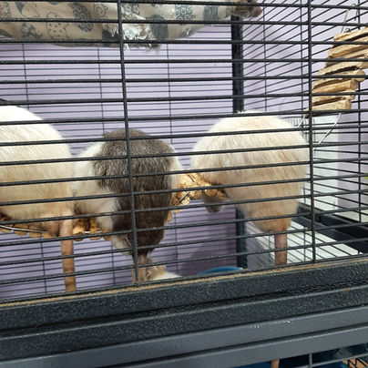 That said, we love sharing photos and updates, so you can feel confident knowing your future pets are raised in a clean, attentive, and loving environment. All of our cages feature ample water bottles, food bowls, enrichment items (which are constantly changed), litter boxes, and climbing space.